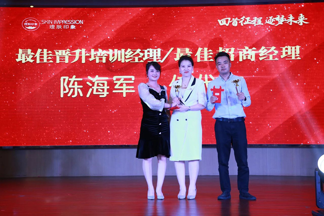 最佳晋升培训经理陈海军:一直以来,理肤印象给我的信念就是坚持走,努力走,总有一天会突破自己。感谢张总,感谢大家对培训部的支持。