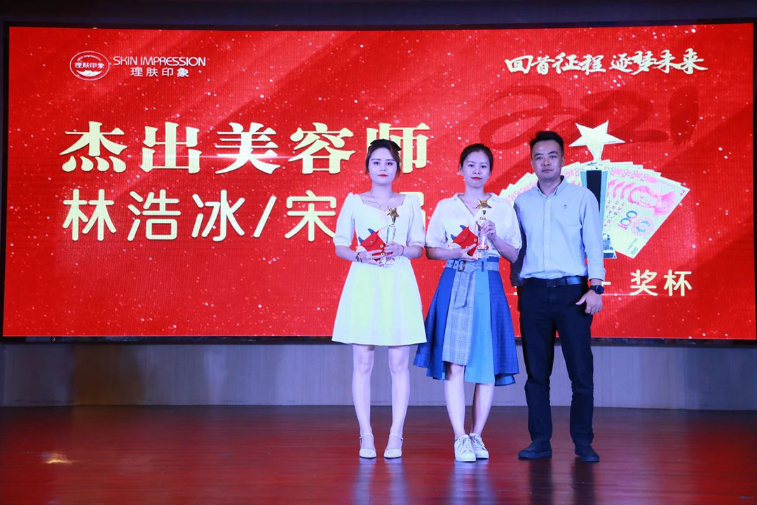 所谓上行下效,高标准、严格要求的领导,一定会带领出卓越的团队。理肤印象拥有如此辉煌的成绩,离不开团队每一位成员的功劳。晚宴现场,理肤印象也对优秀员工进行了表彰,并颁发了荣誉证书、奖杯及奖金。